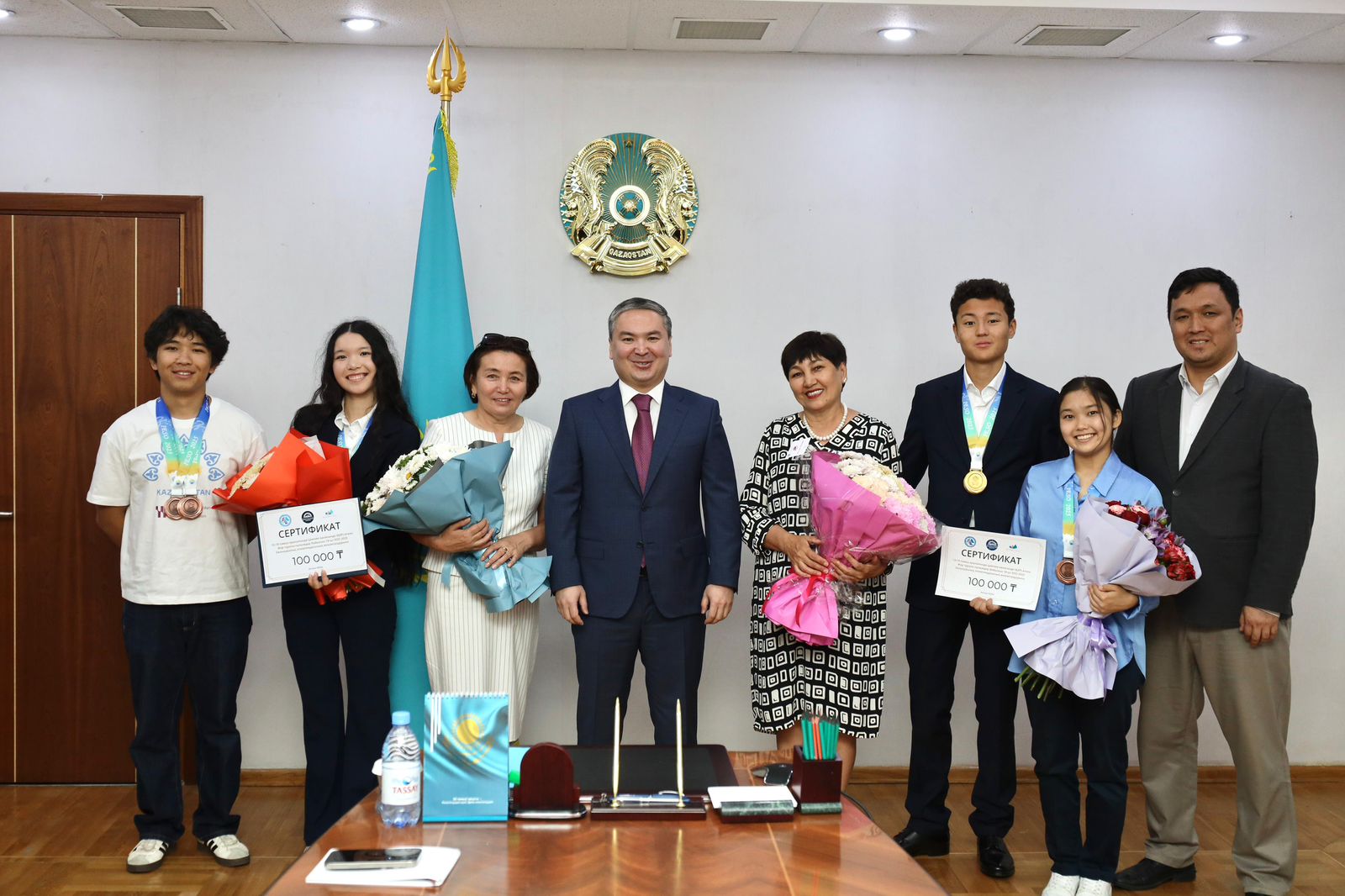 18 августа 2025 года в Астане Ерсайын Каиргазиевич Нагаспаев, министр индустрии и строительства Республики Казахстан, встретился с медалистами IESO 2025 и поздравил их. Он подчеркнул, что успех юных геологов — результат труда студентов и наставников и предмет национальной гордости.